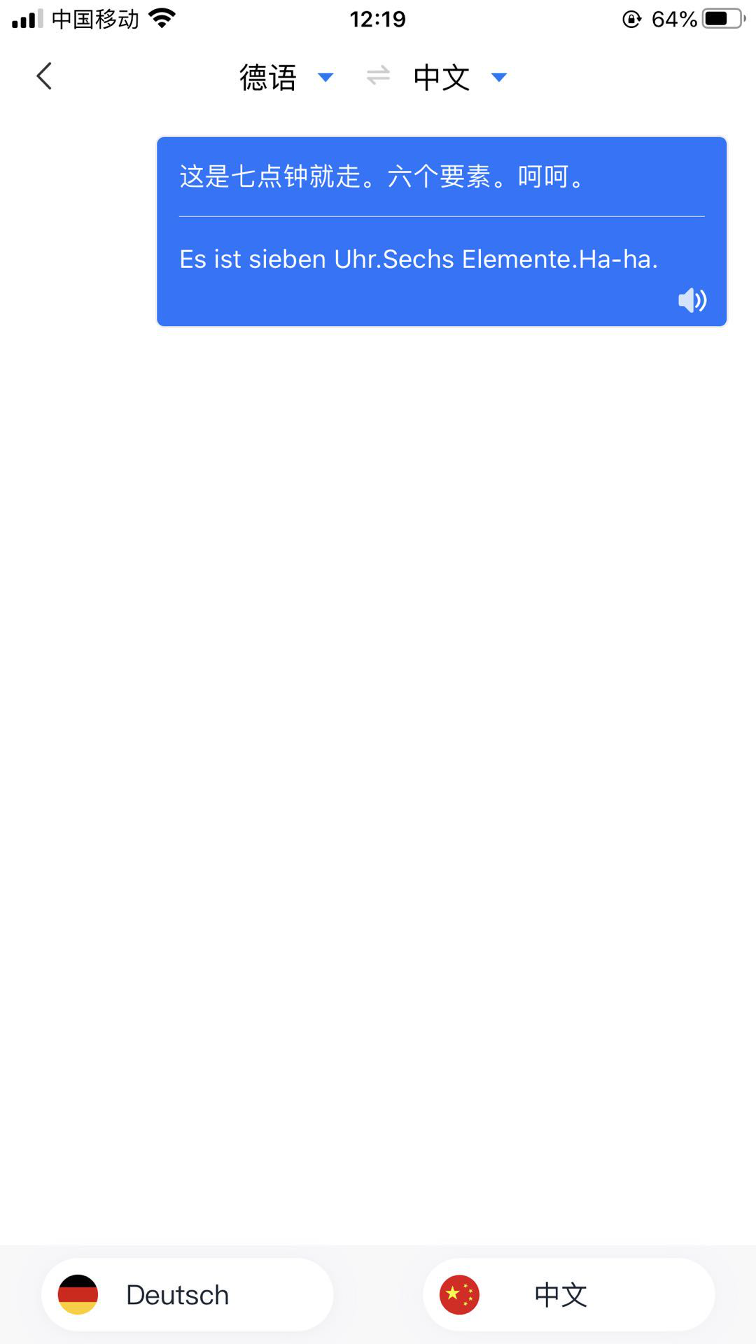 5、点击下方的德语图标,可以直接开始录音,翻译框中就会出现你刚才说的语言翻译,翻译速度非常快,使用起来很方便快捷。