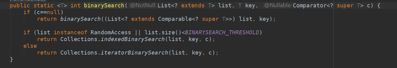 可以看一下Collections的binarySearch方法中对于这一点的运用:(by the way:二分查找的阈值是5000)