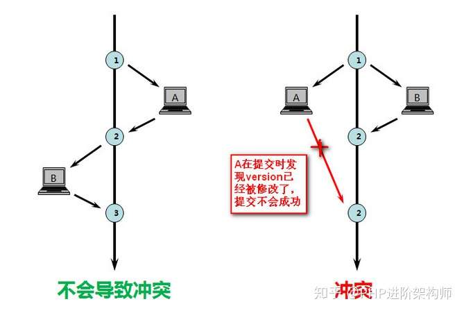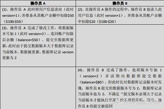 大多是基于数据版本的记录机制。什么是数据版本?就是为数据增加一个版本标识,即为数据库表添加一个version字段,当读取数据时,把数据库版本一同读出,当做了修改后,将数据库版本+1,同修改一起提交。如果提交数据的版本号 >数据库当前版本号,提交成功。如图: