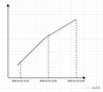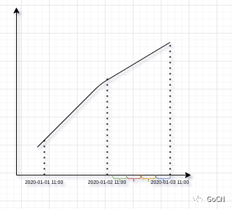 由于只增不减 的特性, 所以我们使用 当前时刻的值 减去 当前时刻一日之前的值, 即可获得单日的访问量, 例如下图, 用