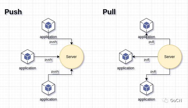 对 Prometheus 来讲, 他的上报采用的是 pull 模型, 也就是拉取模型, 服务端根据客户端的位置, 按时去固定接口拉取. PULL 模型 相较于 PUSH 模型在 客户端较多的情况下较为明显, 很好了缓解了 服务端的并发压力, 但也带来了一些问题, 例如 每个客户端的 位置都要注册给服务端, 会很麻烦, 这个问题通常使用 服务发现和注册 来解决.