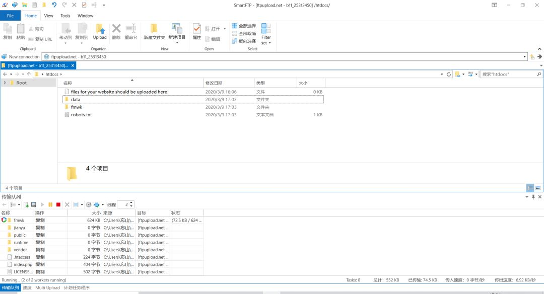 下载源码后直接解压,然后复制里面的文件到FTP软件中。直接复制粘贴到 htdocs 目录下