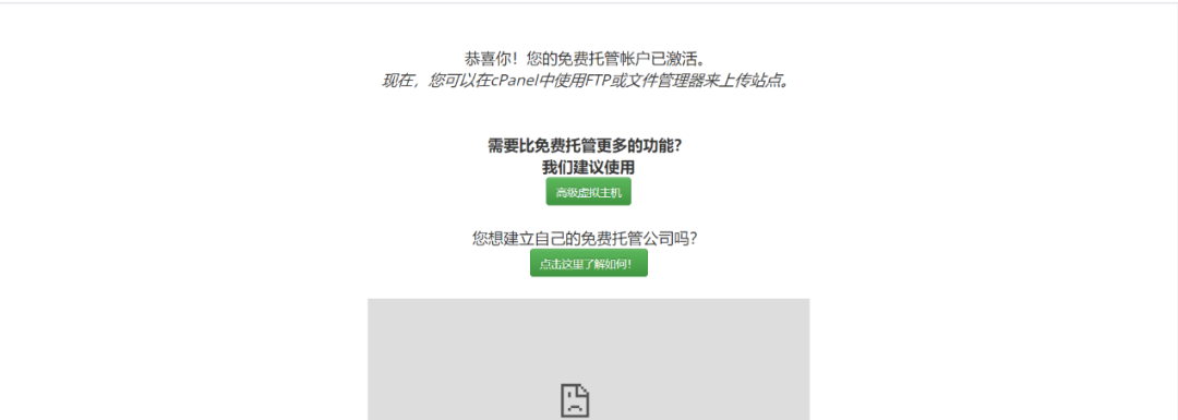 链接地址在邮件中,例如我的地址是:http://www.beiwangshan.byethost11.com/,大家自己在邮箱中找。打开后是下图的话,就激活成功了。