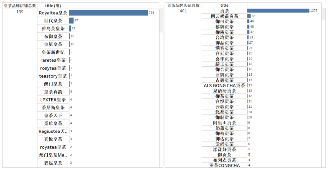 当笔者在制作可视化图表的时候,会发现有些奶茶品牌的名称极为相似,让人有一种傻傻分不清楚的感觉。