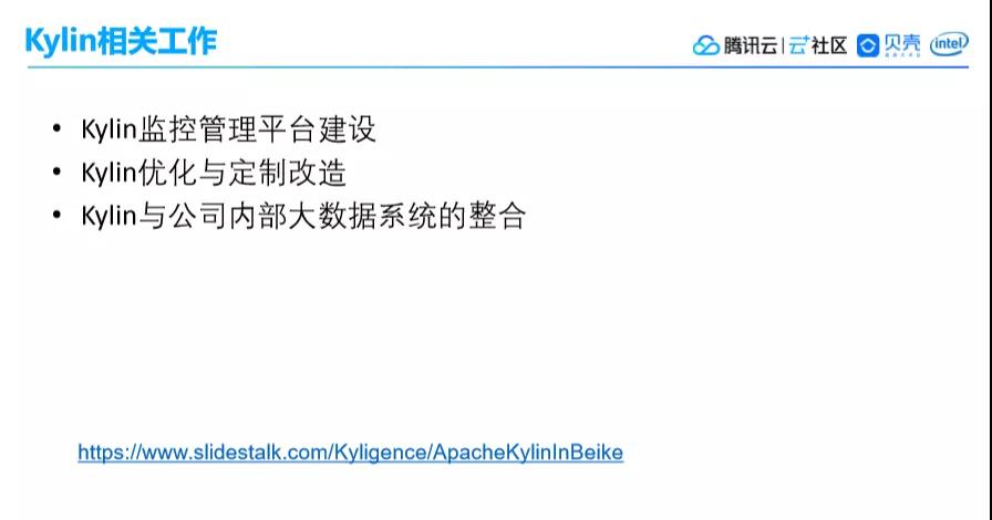 一是 Kylin 监控管理平台建设,Kylin 承载着综合指标,其中很多是关键指标,一出问题会影响整个作业,需要把监控管理构建好,及时看到各种问题可以解决。二是优化和定制服务;三是和整个公司大数据应用、公司大数据系统、原数据、调用系统进行整合。