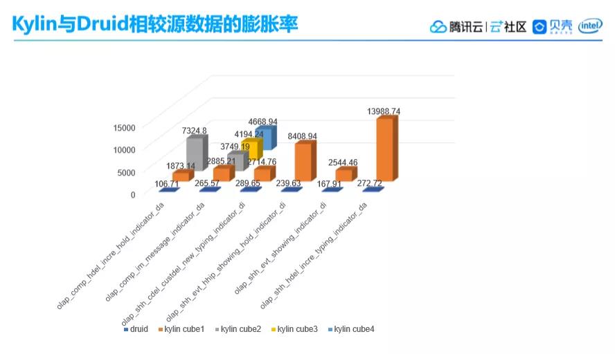 Druid 一般数据量比较小,Kylin 根据维度和基数密切相关,最大的数据膨胀率达到了 139%。