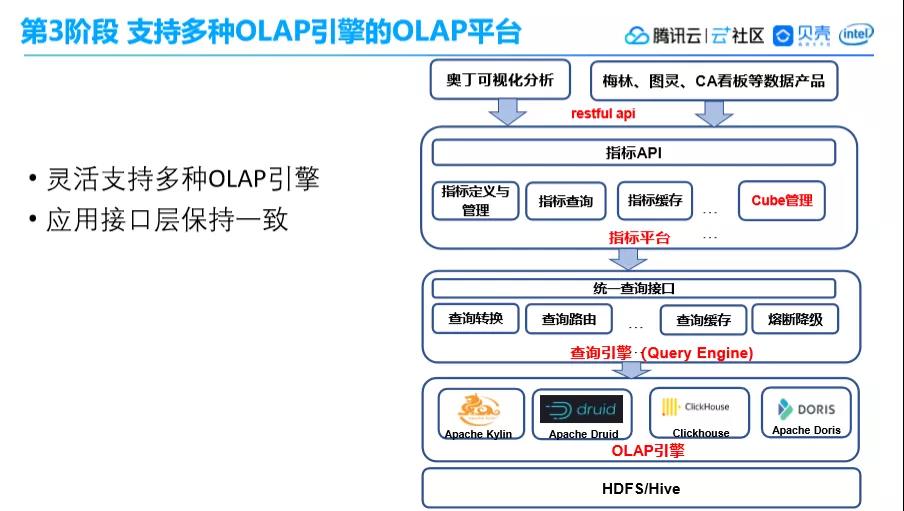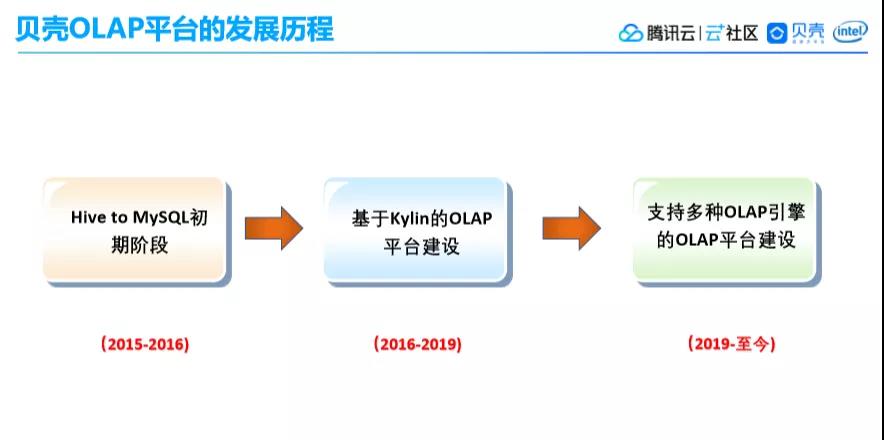 导语 |为了满足贝壳日益复杂、多样化业务场景下的多维数据分析需求,贝壳 OLAP 平台经历了从早期基 于Hive+MySQL 原始阶段,到基于 Kylin单一引擎的平台化建设,再到支持多种不同OLAP引擎的灵活架构的发展历程。本文是对贝壳找房数据智能中心资深研发工程师——肖赞在云+社区沙龙online的分享整理,希望与大家一同交流。