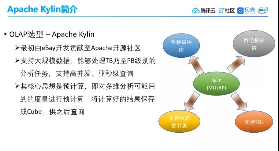 Kylin 的原理并不复杂,很多其他基于 OLAP 的引擎也是这么做的,只是之前没有应用大数据的基础设施,Kylin 是基于大数据平台构建的,可以支持更大的维度、数据量,以前的 OLAP 引擎有些计算是有限的。