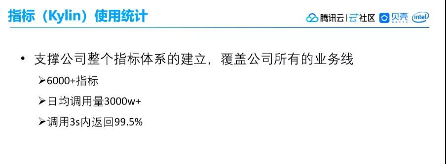 主要是这三方面工作。Kylin 在贝壳有很大的应用量,高峰期整个企业有 800 多个 Cube,300 TB 以上的存储量、1600 亿行的数据,Cube 最大有 60 多亿,日均查询有两千万。
