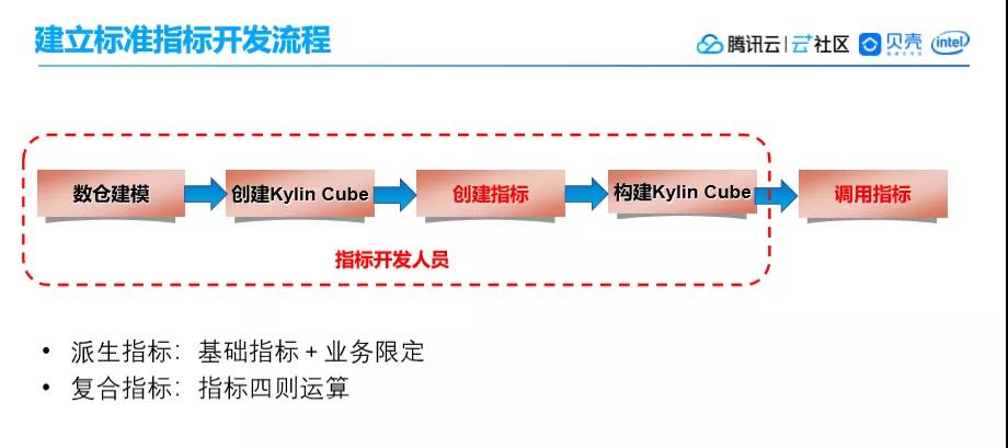 在基于 Kylin 的 OLAP平台里面,对外统一的输出方式是指标。建指标的流程是数仓建模,确定业务过程生成任务表后创建 Cube,然后创建指标,在构建 Cube,最后进行指标的调用。