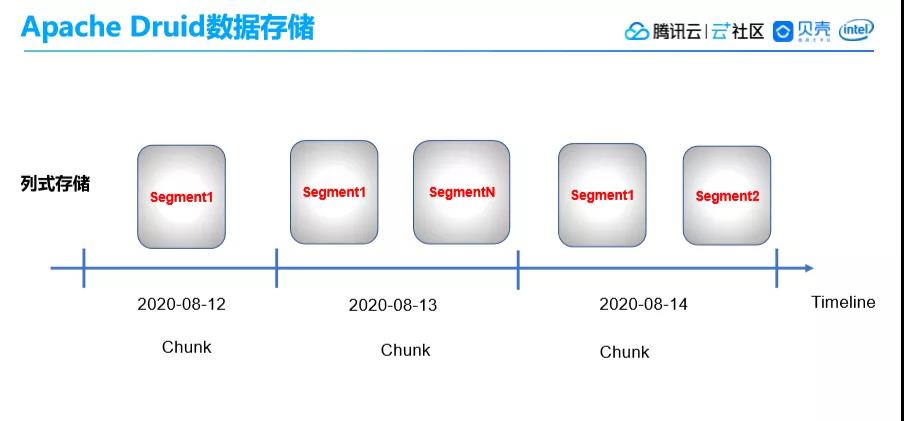 它的原理是根据时间来分区,每个区叫做一个 Chunk,然后根据数据量的大小又可以分成一个或多个 Ssegment 文件。Ssegment 是自定义的列式存储格式,对查询比较优化,对 OLAP 引擎是比较友好的。