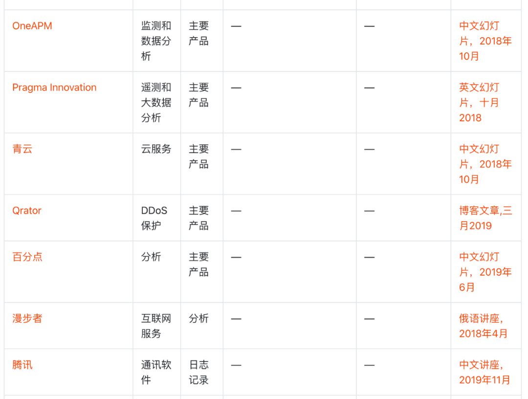 从2016年开源以来,飞速发展,在官网的使用者列表里,你会发现有许多国内互联网公司在用,有云产品、日志产品、银行数据分析等等。每个后面都会有相对应的PPT或视频。
