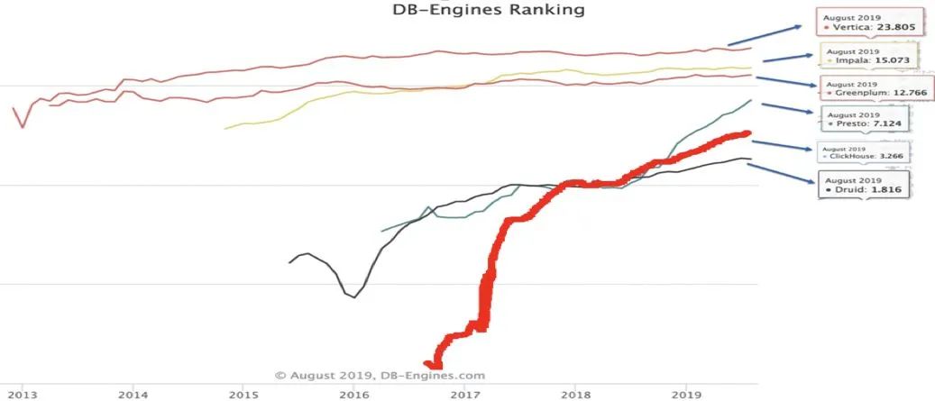 短短几年的发展,从DB-Engines上的这条红线就能看出势头迅猛