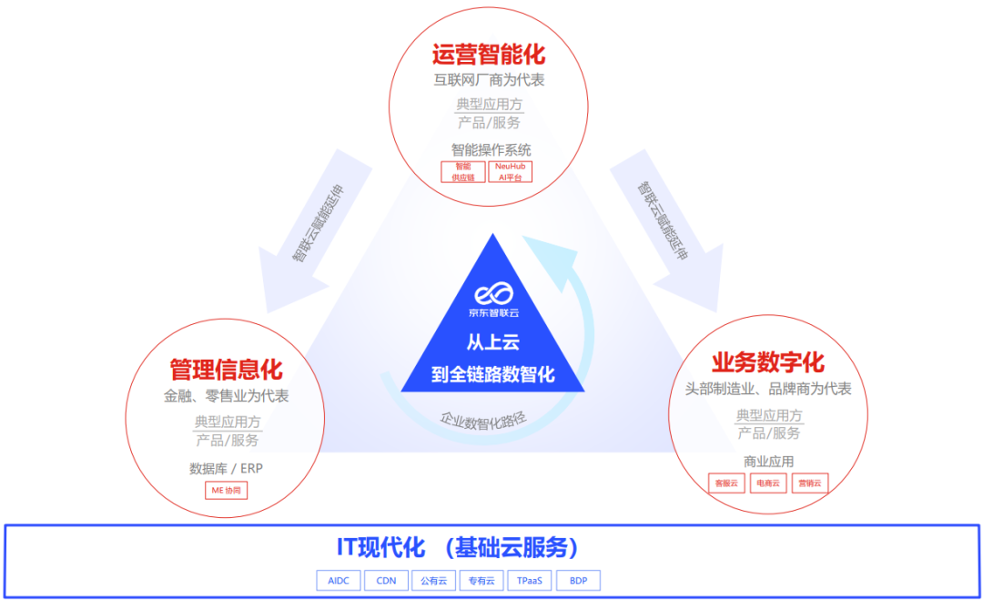 对应来看,这其实说的是在完成品牌升级后,京东智联云作为“京东技术与服务输出的核心通道”地位清晰化,明确“聚焦客户从上云到全链路的数智化”战略,由此带来打法上的竞争优势。
