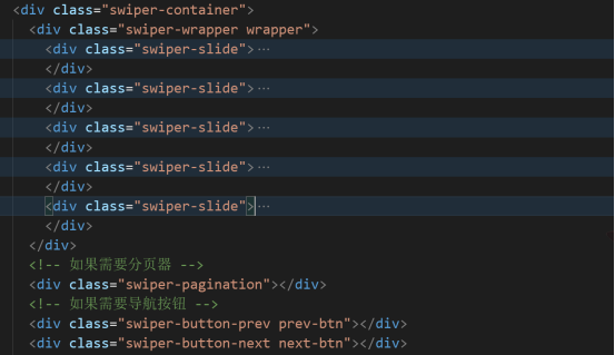 需要注意的是,我们在使用swiper时,命名要跟官网上的api一致,如果想修改样式,我们再添加一个class名就行