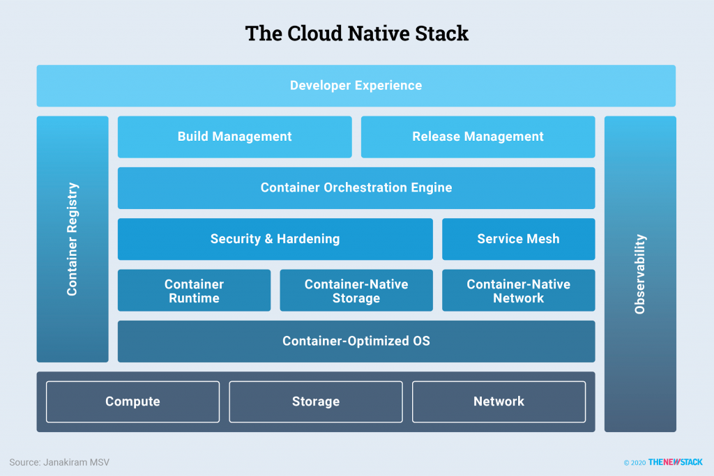 与容器运行时一起,容器原生存储和容器原生网络构成了云原生堆栈中容器优化操作系统之上的层。