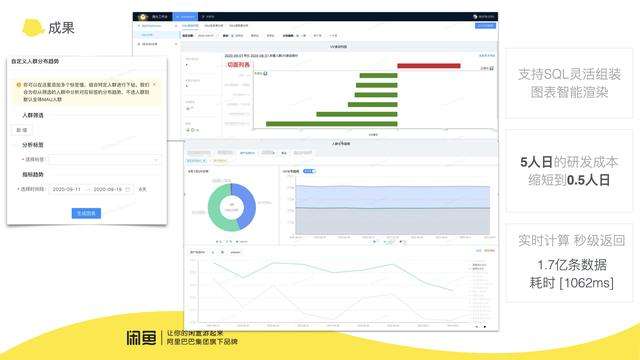 - 围绕闲鱼的业务场景,定义了一系列能够更凸显业务波动信息的,对业务有价值的数据的可视化图表渲染方式,并把它抽象到我们的图表库里面