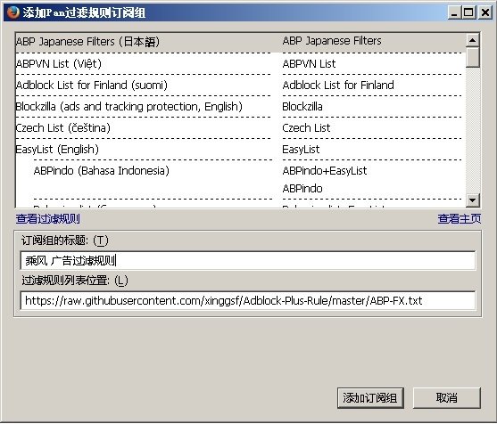 3. 合并EasylistChina、EasylistLite、CJX'sAnnoyance、EasyPrivacy;