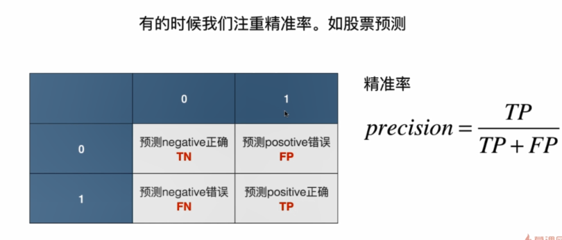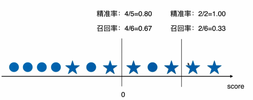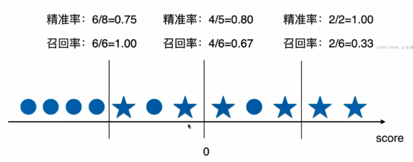 精准率高,则对特别有把握时预测对,概率为90多的预测对,可以将概率低但对预测错