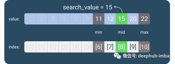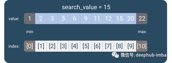 使用新的中点,我们检查这是否是我们要寻找的数字。在这种情况下,正好是15,这样这次查找就完成了。