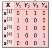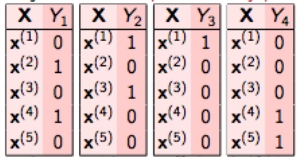 这是最简单的技术,它基本上把每个标签当作单独的一个类分类问题。例如,让我们考虑如下所示的一个案例。我们有这样的数据集,X是独立的特征,Y是目标变量。