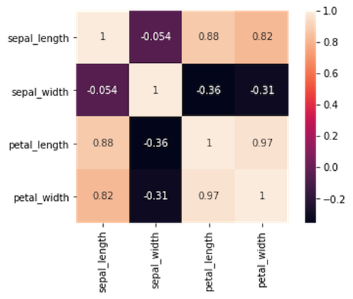 主要的结论是花瓣的大小有高度的正相关,而萼片的测量是不相关的。注意花瓣特征与萼片长度也有较高的相关性,但与萼片宽度无关。