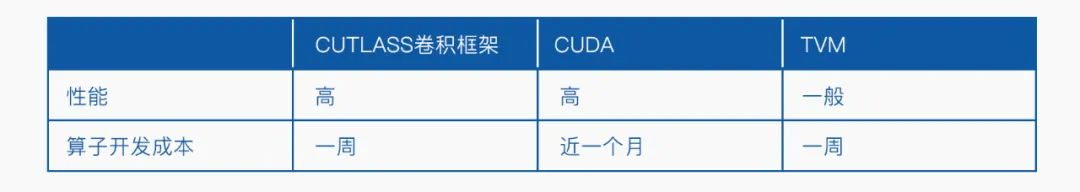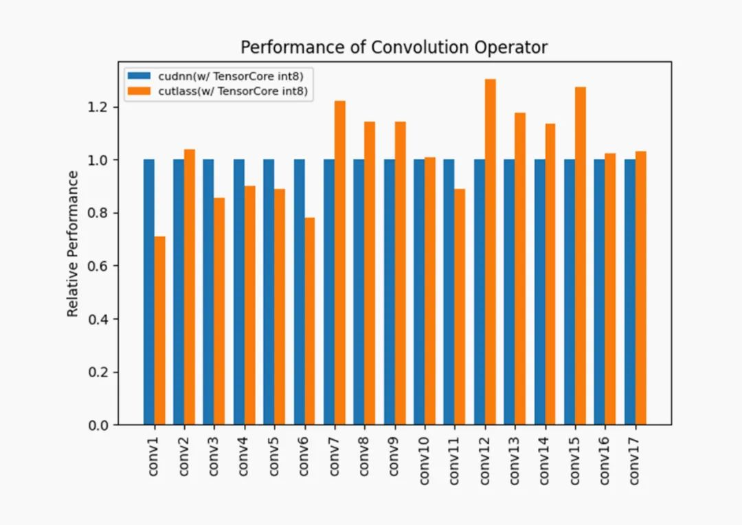 借助 cutlass 框架,开发人员可以开发自定义分块大小的卷积算子,解决推理优化中的长尾问题,可以支持自定义激活函数,可以完成卷积算子和访存密集型算子的融合,还可以定制性能还不错的变种卷积算子。