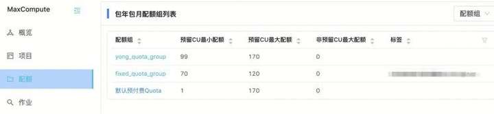 每个MaxCompute project 对应1个独立的quota group子资源组;