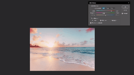 看,调节色温方便多了,让图中的天和海从蓝变绿再变紫,看起来都不是问题。