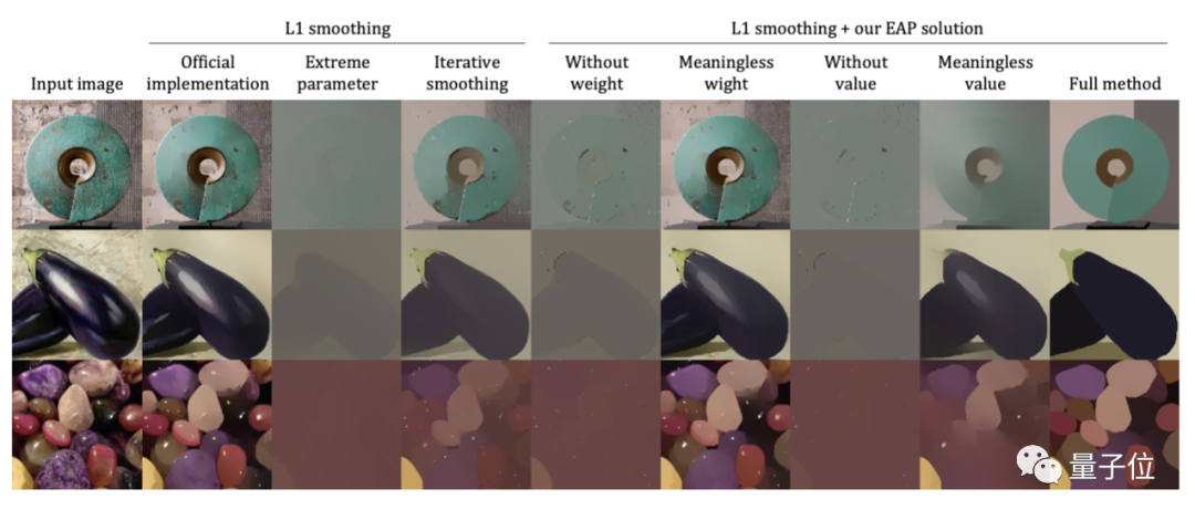(1)在原来的L1平滑中使用极端lambda(10.0),不使用EAP,这会导致图像结构被破坏。