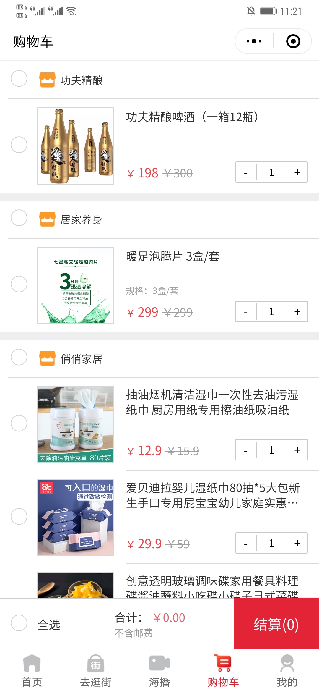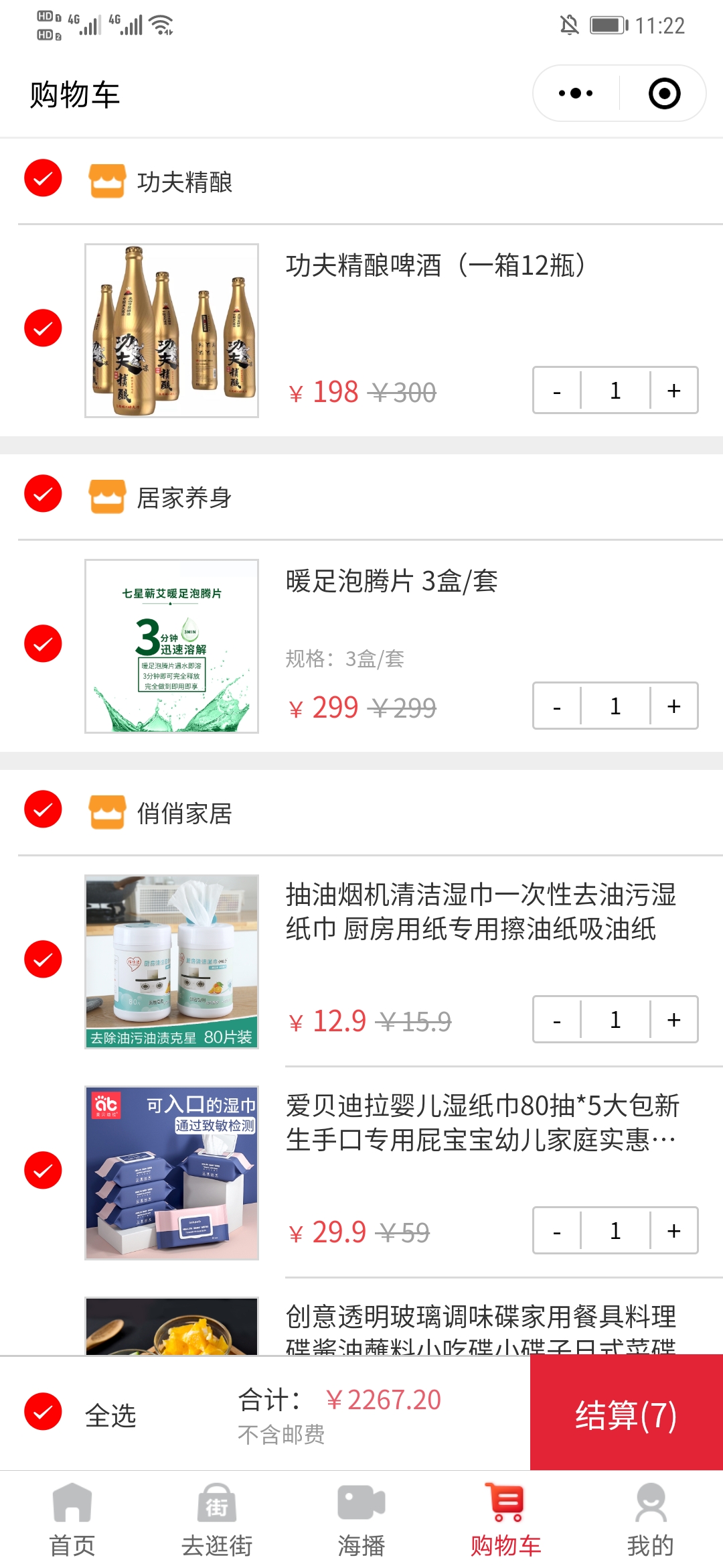 5. 海哇购物车单个商品结算或批量结算