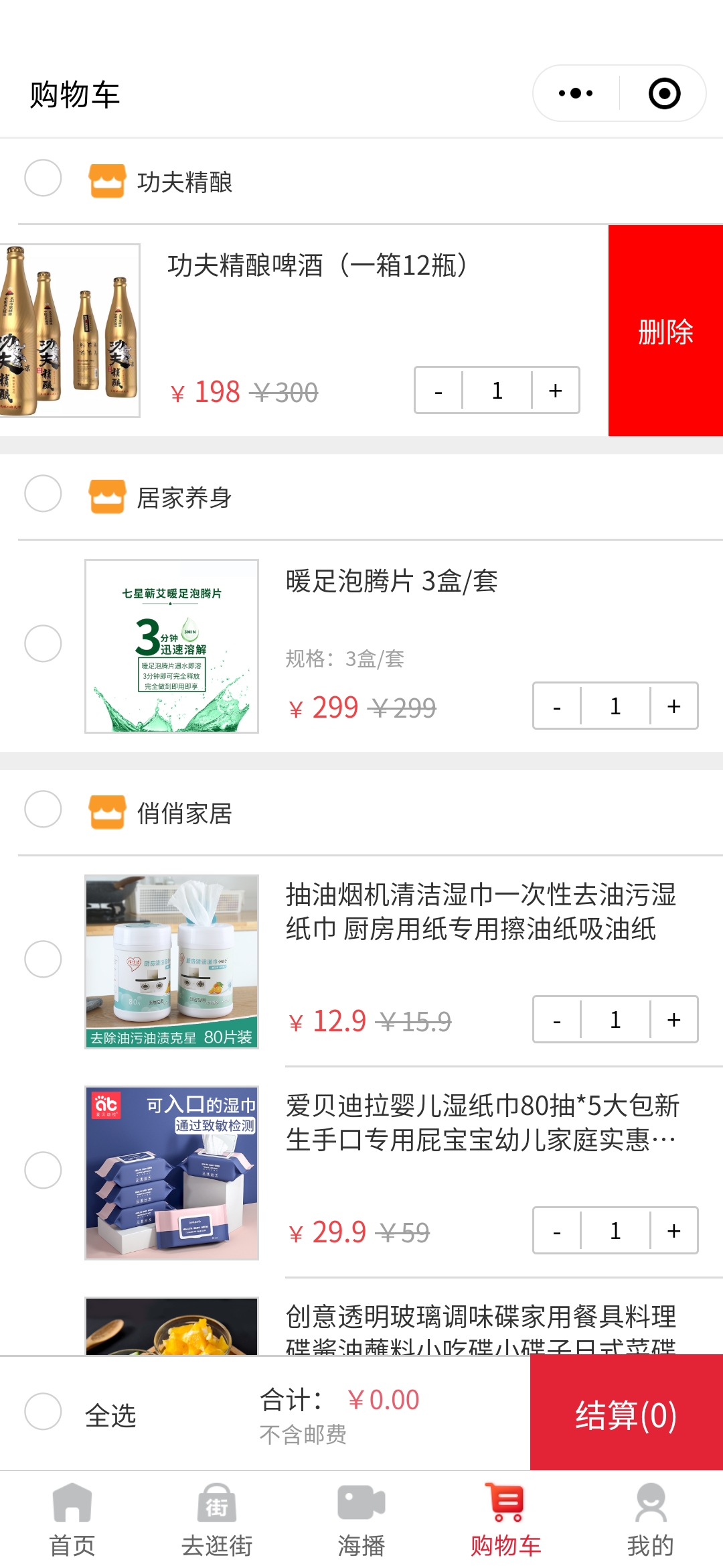 4. 海哇购物车商品移除
