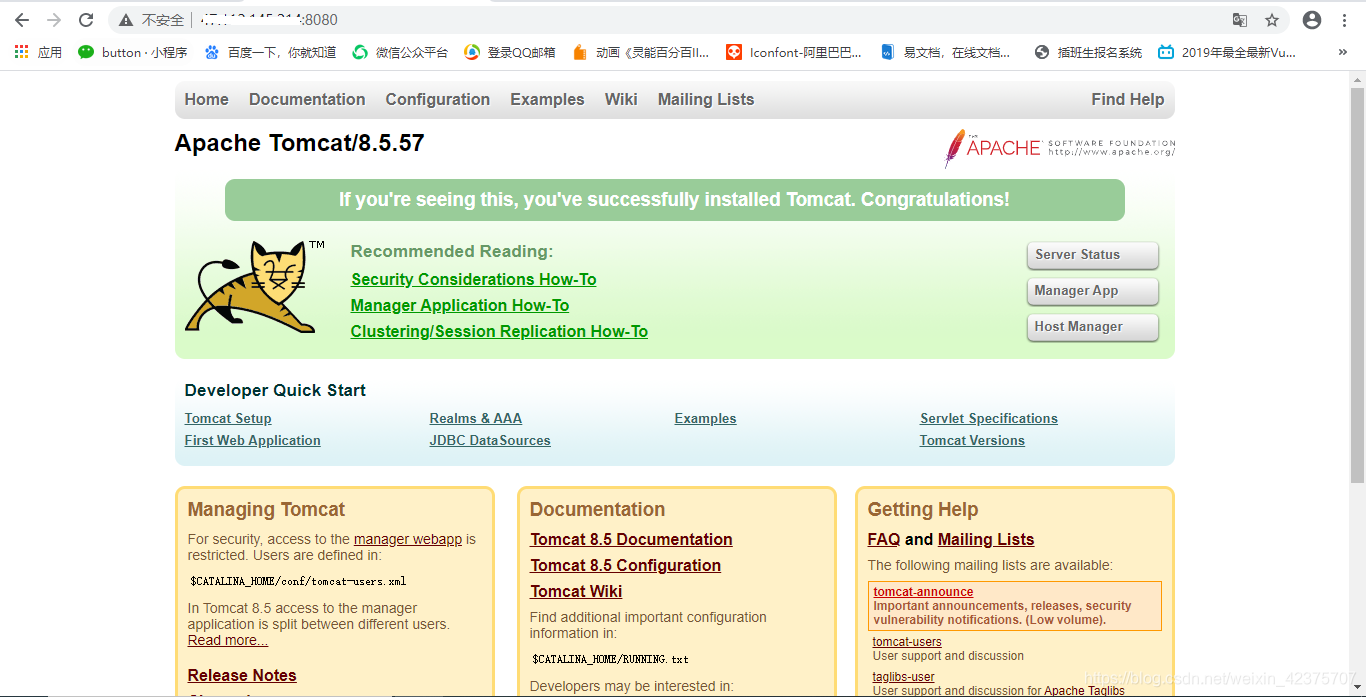 (4)ip地址为你的公网地址, 通过输入http://公网ip:8080 访问tomcat服务器,效果如下,代表你已成功!!!!