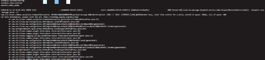 MQBrokerException:CODE:2 DESC:[TIMEOUT_CLEAN_QUEUE]broker busy,start flow control for a while,period in queue:205ms,size of queue:880