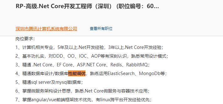 越来越多的应用提出了高性能的要求。腾讯今年开始招聘.NET了,也对性能调优这一块提出了明确的要求。随手翻一翻招聘网站,.net高级开发或架构师岗位,基本都要求掌握数据库的使用及性能优化。