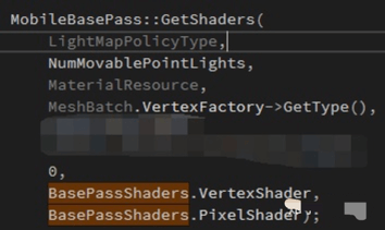 最终得到顶点着色器和像素着色器的调用如下(此时材质类型和渲染Pass已经确定):