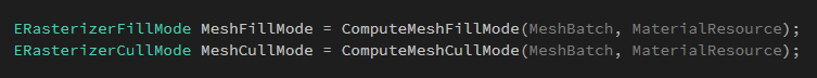 7)获取该Mesh在当前Pass绘制需要的Shaders,绘制状态,光栅化状态,并最终生成该Mesh的绘制命令。