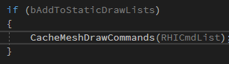 5)调用不同Pass(以BasePass为例)的AddMeshBatch函数,并将Drawlistcontext作为参数传入(方便之后把生成的绘制命令缓存住)。