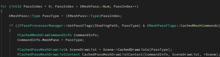 4)遍历所有的Rendering Pass类型,获取当前场景的CachedDrawLists生成Drawlistcontext。