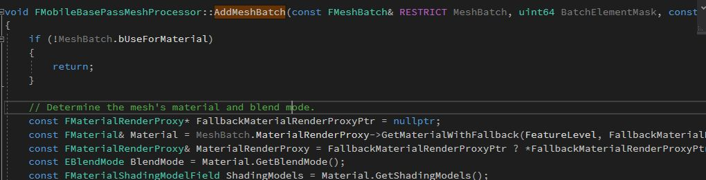 6)通过一系列参数判断该Mesh应不应该在当前Pass(BasePass为例)生成绘制命令,如果验证通过,那么调用当前Pass的Process函数。