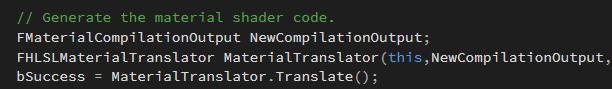 2)新建一个ShaderMap实例,调用HLSLTranslator把材质节点翻译成HLSL代码。