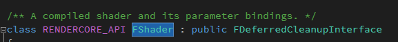 因此FMaterialResource里面存放的实际上是FShader的集合,而FShader里面存放的就是最终使用的Shader代码了。