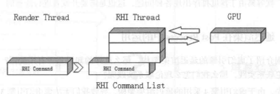 员工执行任务时也不是直接向GPU发送指令,而是将渲染命令添加到RHICommandList,也就是RHI命令列表中,由RHI线程不断取出指令,向GPU发送,并阻塞等待结果。