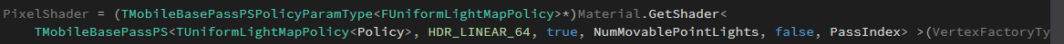 上文中的C阶段会先调用ShouldCompilePermutation询问TMobileBasePassPS是否为当前Template、VertexFactory、Material组合编译Shader。