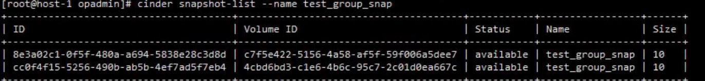 通过cinder snapshot-list查看,成功为加入group的卷创建了快照,通过group创建的快照,两个快照保证了一致性。