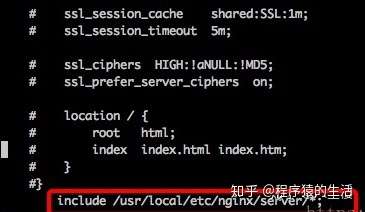 如图,在nginx.conf最后一行,添加include文件