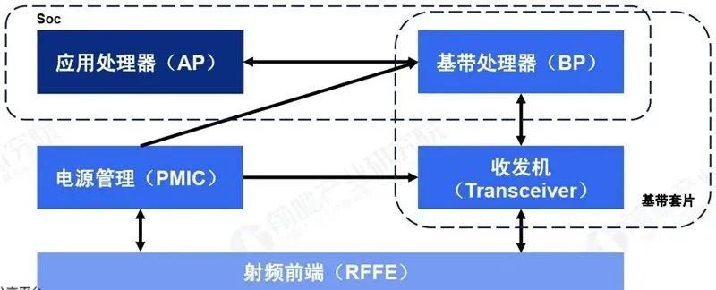 基带芯片是实现UE与PLMN联网的关键,是终端实现通信功能必不可少的芯片。基带芯片包括基带处理器、收发器、电源管理芯片、WNC等。目前主流的基带芯片主要分为Soc和外挂基带两种形式。