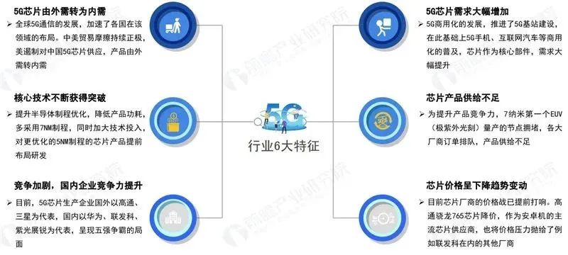 依托行业不同生命阶段关键因素的发展特征对行业的成熟度进行综合判定和分析,目前我国5G芯片处在行业成长中期。2015年以来5G发展政策频繁出台,促进了5G基站及下游手机和互联网汽车等应用领域的发展。中美贸易摩擦持续升级,倒逼我国5G芯片产业链向上游延伸,提升竞争力。2019年6月6日,5G进入商用化发展阶段,新基建5G的发展,加快推进基础设施的建设完善。5G芯片国内重视程度的提升,促进国内相关领域的投资布局,入局企业增加,向快速成长期发展,5G芯片的技术突破及商用化发展将促进行业快速迈进高速成长阶段。