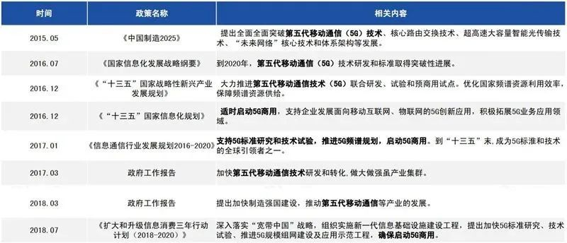 从2017年政府工作报告首次提到“5G”,再到2019年5G应用从移动互联网走向工业互联网,进入商用元年,国家政策对5G的重视度不断上升。2020年是5G发展的关键年份,中央政治局会议、国务院常务会议、中央政治局常务会等会议和相关文件多次强调“加快5G商用步伐”,充分体现了5G基建对于拉动新基建和经济增长的重要性和紧迫性。