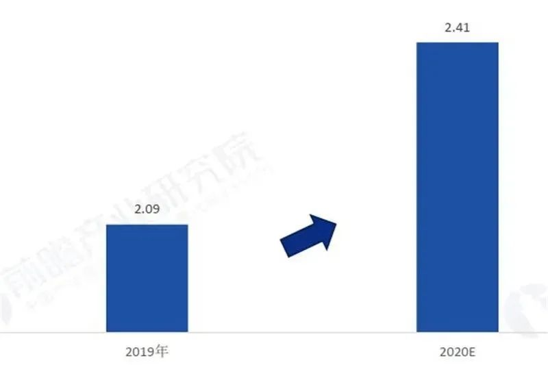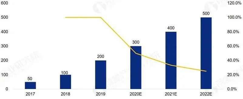 ▲2019-2020年中国5G芯片规模测算(单位:亿美元)